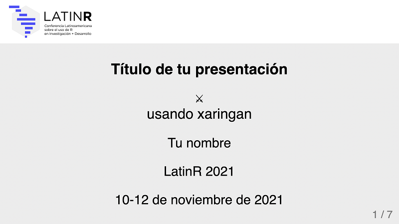 Si lo deseas, puedes usar el template de presentación de LatinR, disponible en nuestro repositorio de GitHub.
